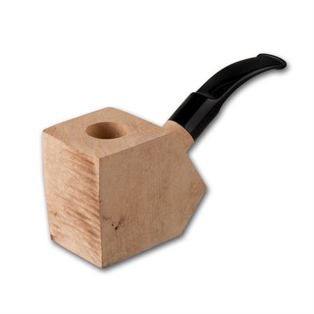 Die Pfeife zum Selberschnitzen. Die Bohrungen sind durchgeführt und das Acrylmundstück ist bereits fertig angepasst, 9mm Filter.Kantel-Formen nach Anfall.