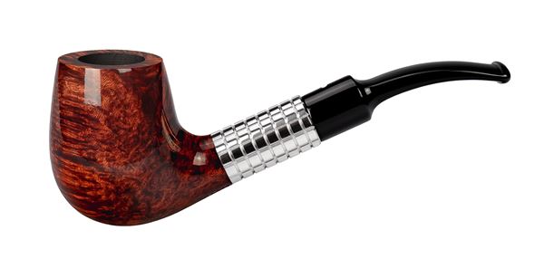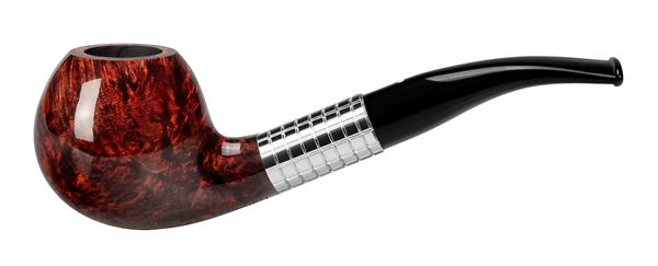 Pfeife mit kontrastreicher Farbgebung, Hochglanz poliert, mit einem auffälligen, glänzend polierten Aluring.