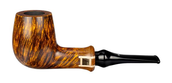 Pfeife ausgestattet mit einem Ring aus verschiedenen Edelhölzern, zusammengefügt, gedrechselt, und von Hand in Form gebracht.