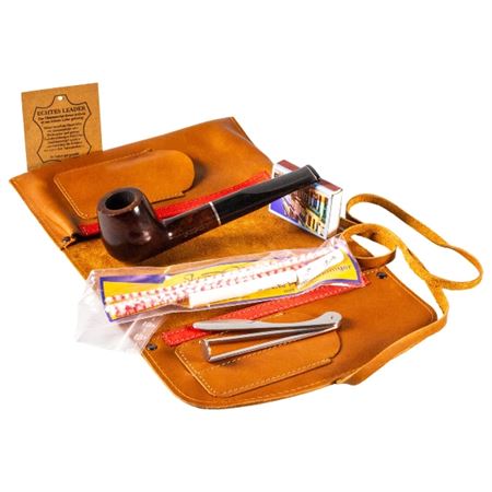 Passatore Pfeifen-Rollbeutel Canvas + Leder cognac. Größe 20cm x 10,5cm für 2 Pfeifen. Fächer für Feuerzeug, Tabak, Pfeifenbesteck und -reiniger.